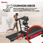 Cushion deck adalah sistem bantalan khusus yang terintegrasi pada area lintasan treadmill, berfungsi untuk menyerap dampak tekanan dari langkah kaki pengguna. Fitur ini membantu mengurangi beban pada sendi, seperti lutut dan pergelangan kaki, sehingga lebih aman digunakan untuk latihan jangka panjang.